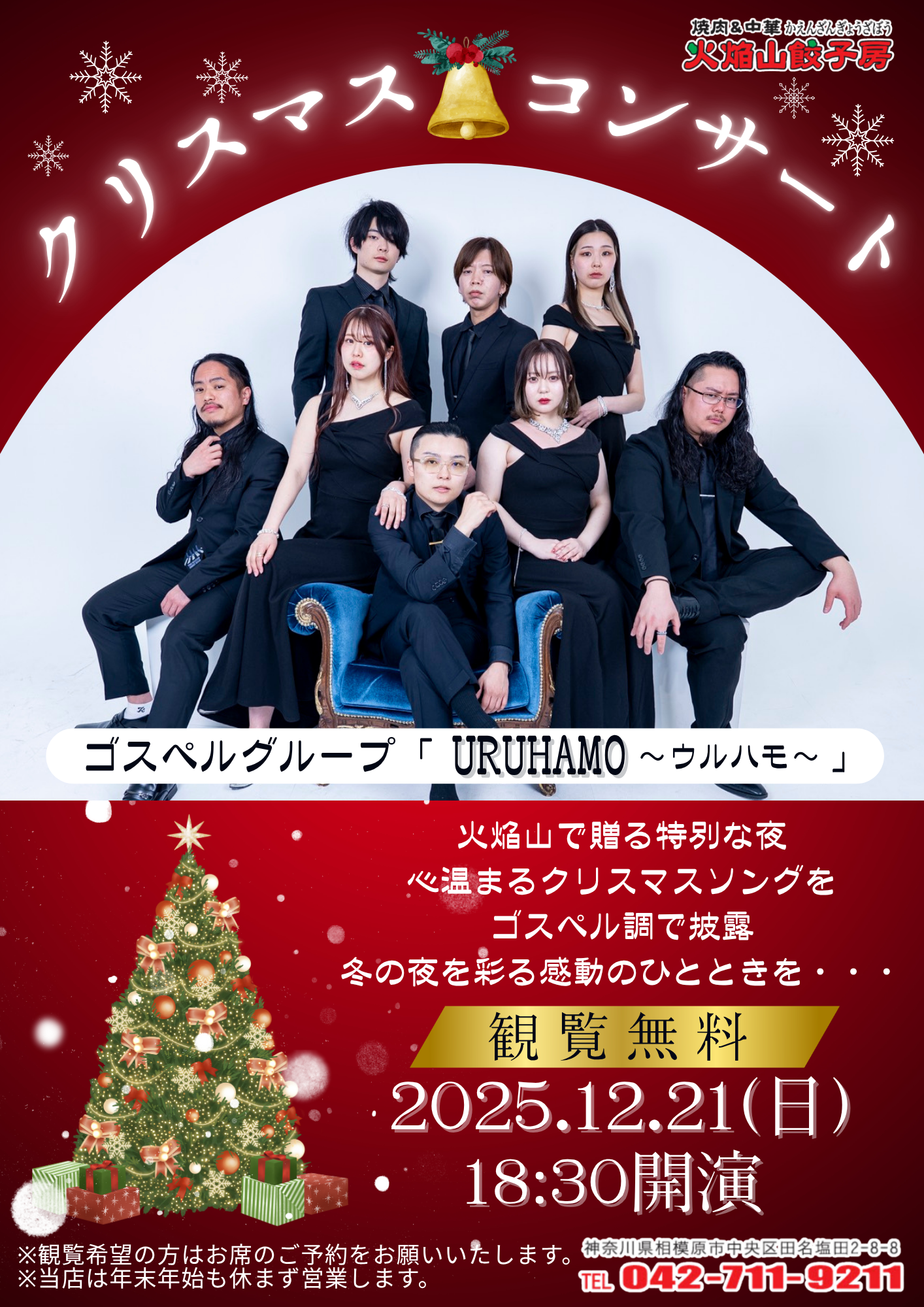 今年もURUHAMO(ウルハモ)さんによるクリスマスゴスペルコンサートを開催いたします🎄